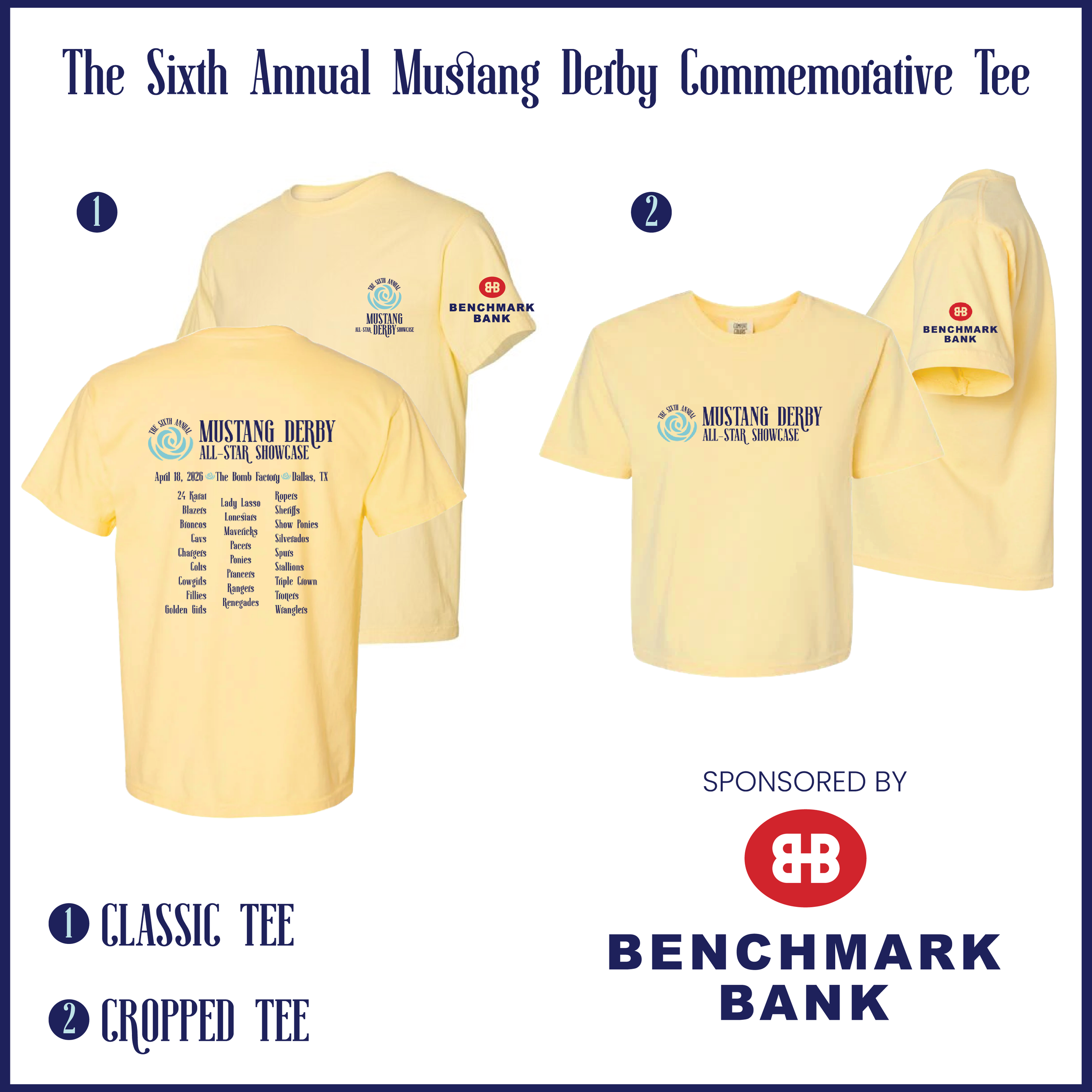 Tickets: Sales will go LIVE March 26th at noon. We anticipate that tickets will sell out for this event! We will open up ticket sales to our families first before opening up the event to the public, but we recommend purchasing tickets early. Presales for our limited edition 2026 Derby Tee will also go live at that time and be available for pick-up in the week before the event.